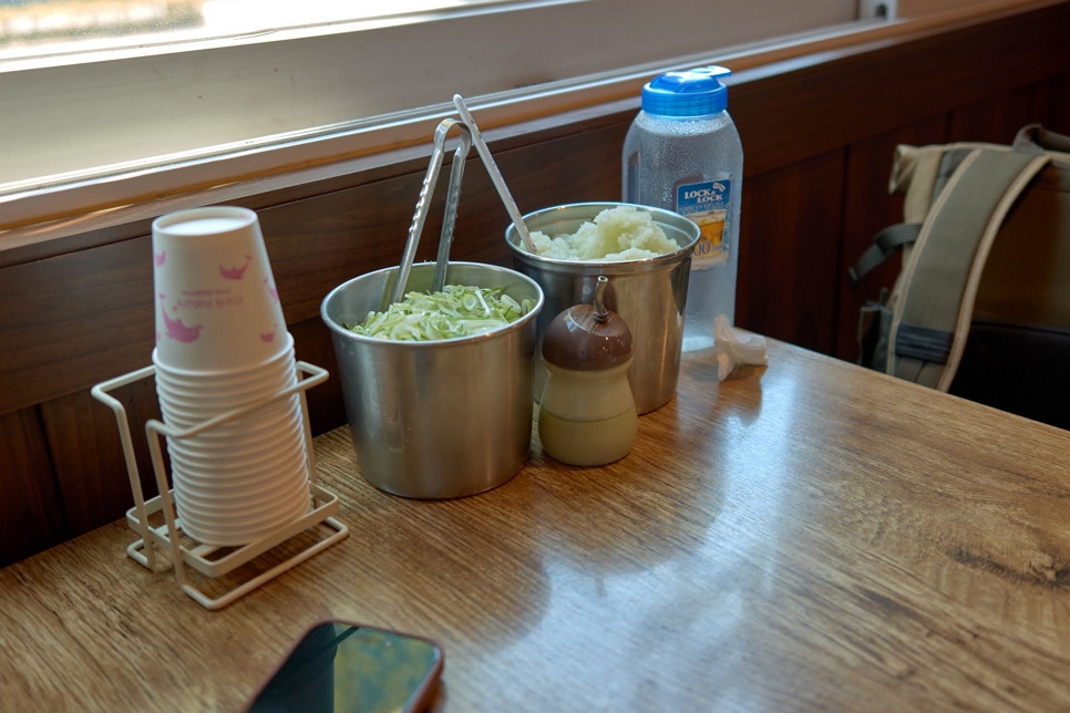 - 셀프 고명: 식탁마다 간 무와 채 썬 파가 수북하게 준비되어 있습니다. 재료의 상태가 매우 싱싱하여 취향껏 듬뿍 넣어 먹을 수 있는 것이 장점입니다.